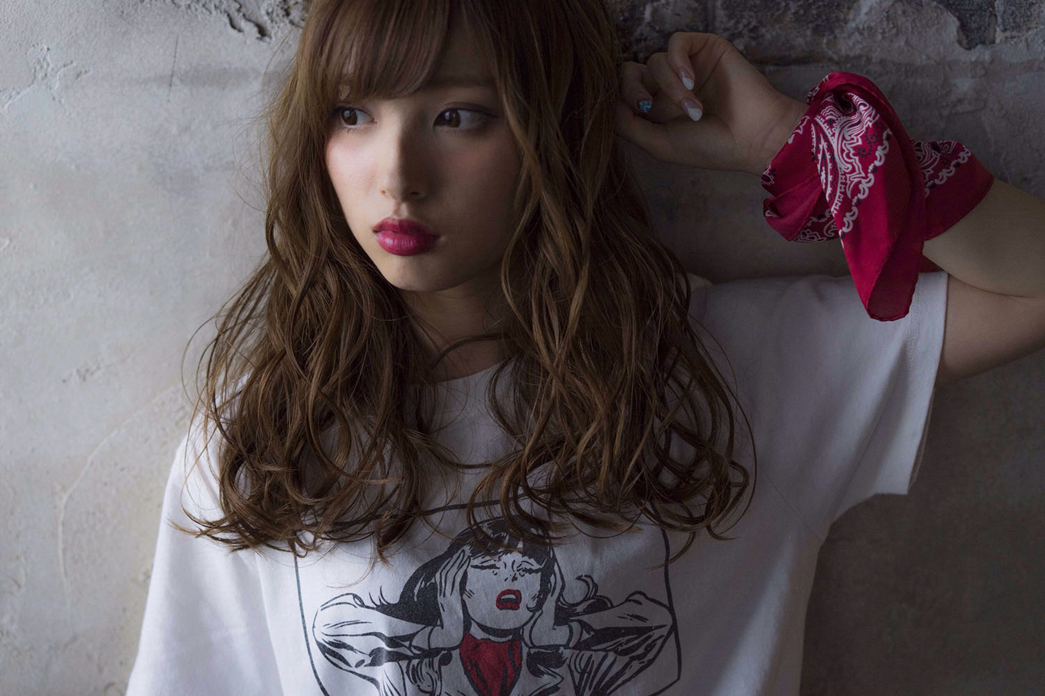 細めのゆるウェーブをたくさんつくり仕上げにますウェットな質感をプラスする事でキュート×クールなわがままスタイルの完成。